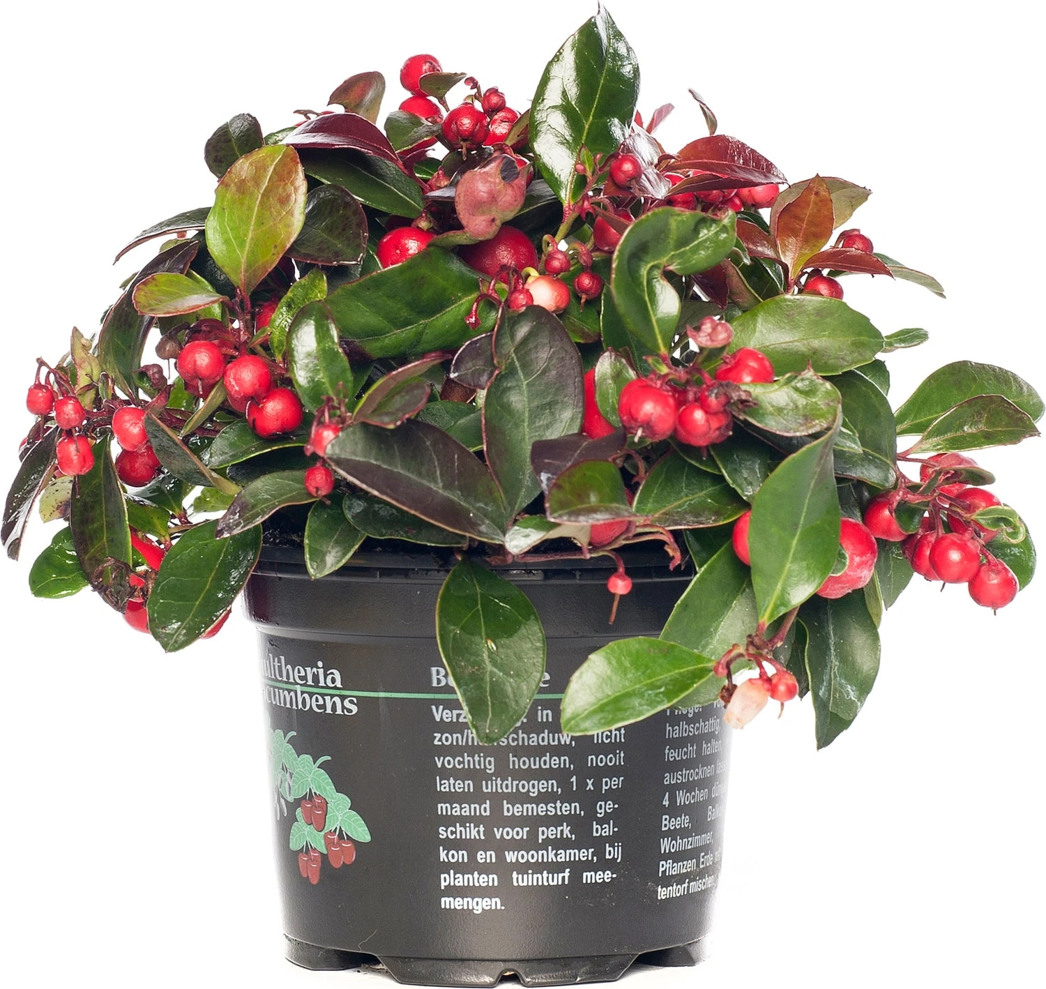 De Gaultheria is eigenlijk een plant voor buiten, daar wil hij graag een lichtzure grond en is hij ideaal als bodembedekker. Zet hem in de zon of halfschaduw. Als kamerplant kun je hem 6 tot maximaal 8 weken binnen zetten, daarna moet hij weer naar buiten. Zorg in de kamer voor een lichte plek en houdt de grond voldoende vochtig.