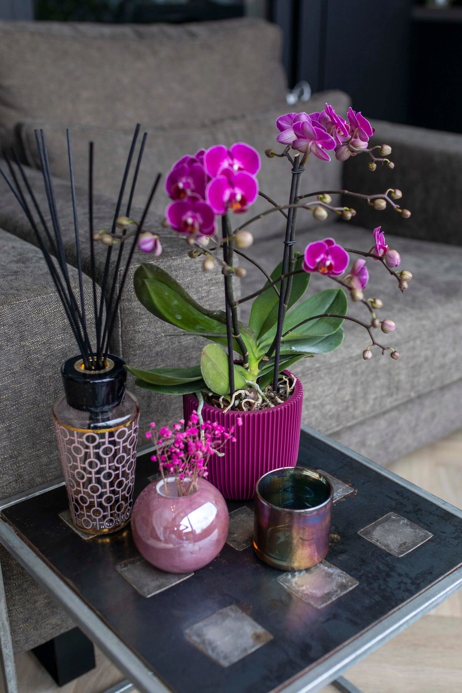 De Capi Groove Special collectie is, zoals de naam al zegt, geïnspireerd op groeven. Vooral op de verticale groeven in stenen en bergen die zijn ontstaan in de loop van de jaren. Een collectie geïnspireerd op grote veranderingen van de natuur. Een speelse en stoere collectie binnen onze indoor nature-lijn. De Nature Groove collectie is handgemaakt, waardoor elke pot uniek is. De Groove textuur is verkrijgbaar in vele trendy kleuren en modellen. Dit exemplaar is paars van kleur en heeft de afmetingen 17,2 x 17,2 x 15,3 cm.