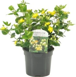 Deze groene winterharde heester – Hertshooi – bloeit lang van de zomer tot ver in de herst met stralend gele bloemen. Hertshooi en de familie van de hypericum geeft kruidachtige planten tot volwaardige struiken. De gele bloemen geven de sierwaarde maar de bekende druppelvormige puntige zaaddozen zijn de grote bekende voor in boeketten en droogstukken. Deze zaaddozen van Hertshooi hebben vele kleuren zoals geel tot fel rood en de grootte verschillend rond de 1 cm.