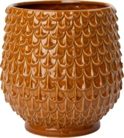 Doordat deze bloempot bruin van kleur is, is dit model tijdloos en past het altijd leuk bij iedere stijl. Voor bloempot Kily is altijd wel een geschikt plekje te vinden! De afwerking van deze bloempot is geglazuurd en zorgt ervoor dat dit model glanst en nog meer uitstraling heeft. Daarnaast heeft het een mooi geschubt patroon. De vorm van deze bloempot is rond wat ‘m zeer geschikt maakt voor verschillende soorten planten.