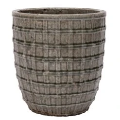 Bloempot Morena is een echte aanwinst voor in jouw interieur. De grijze bloempot heeft namelijk een diameter van 26 cm. Hierdoor past een relatief grote kamerplant in de pot! Zet de wijd uitlopende pot van keramiek dus op een mooie plek in huis en geniet. De pot heeft een reliëf, een craquelé afwerking en is voorzien van een geblokt patroon. De hoogte van dit model is 22 cm.