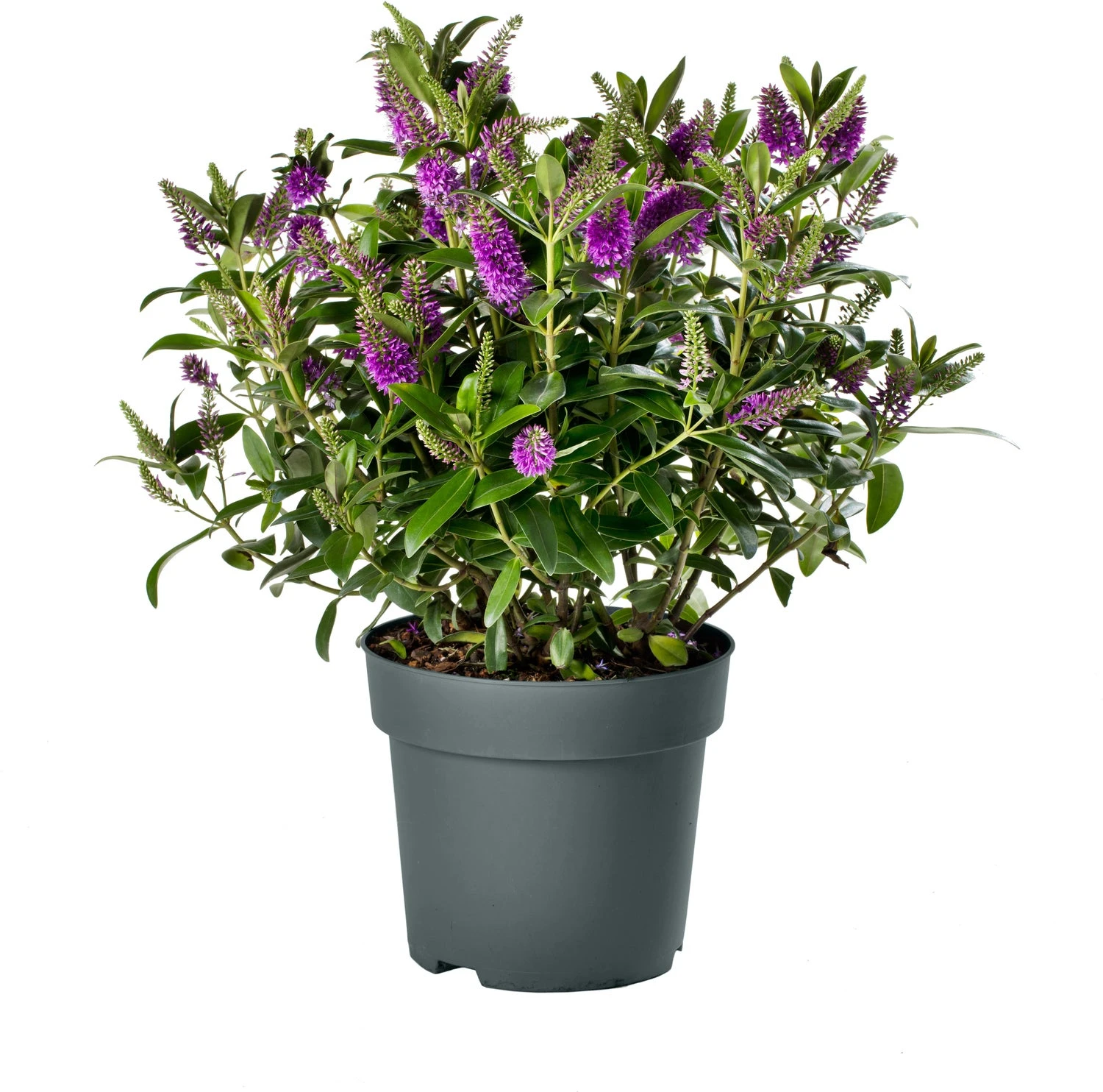 Deze Hebe heeft groen blad en lichtpaarse tot donkerpaarse bloempluimen. Het zijn houtachtige struikjes met bloempjes die in trossen groeien. De Hebe is er in vele soorten die allemaal hun eigen bladkleur en bloemkleur hebben. Ze verschillen flink in winterhardheid en voorkeur voor standplaats. Over het algemeen zijn de groenbladige soorten minder goed winterhard. De Hebe is een aantrekkelijke struik die zich goed laat combineren met andere planten en erg mooi staat in een border of in een pot. Ook in een rotstuin staan Hebe’s erg goed op hun plek.
