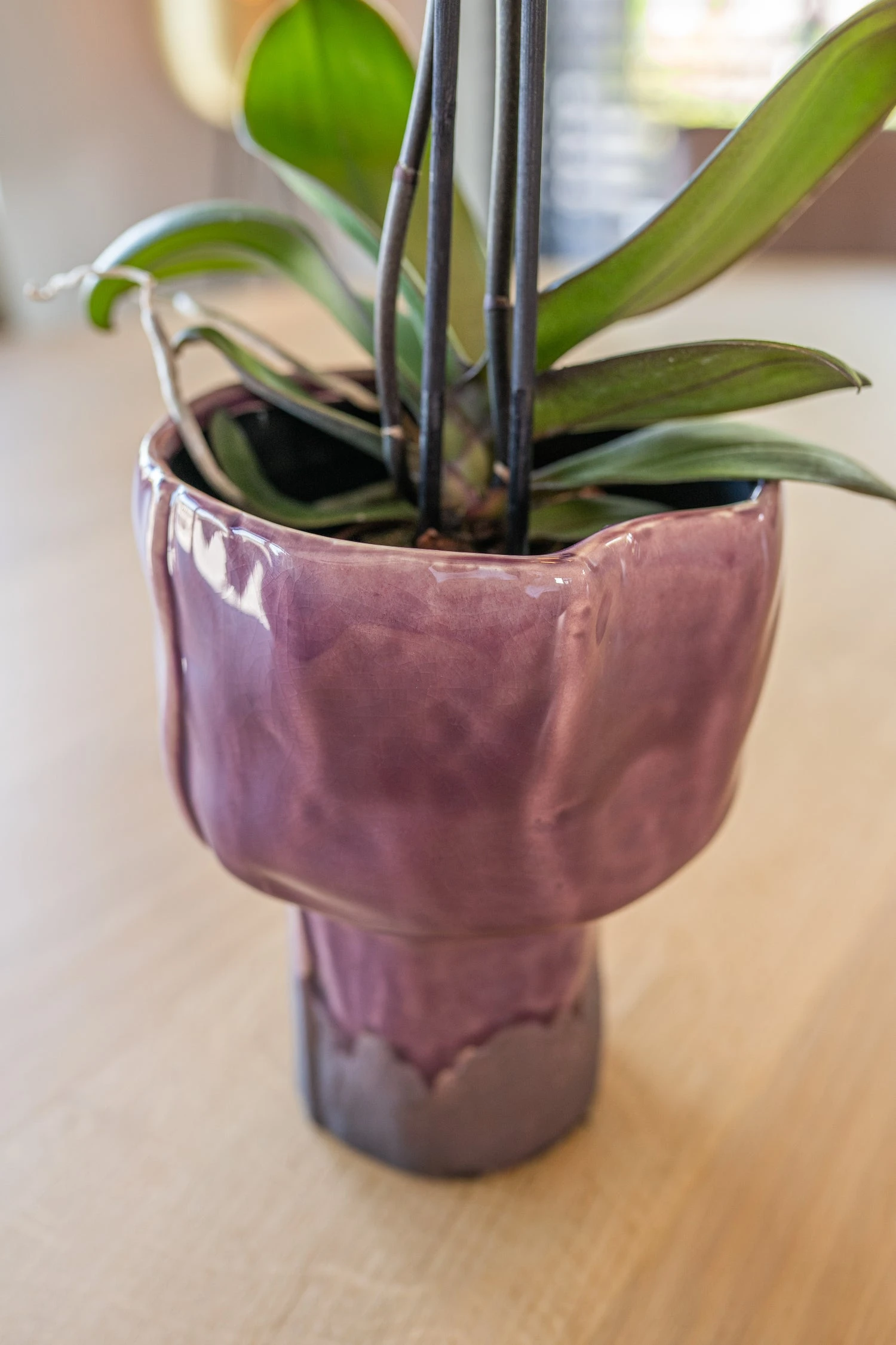 Excentriek en smaakvol, met een verfijnde glazuurlaag in hip violet. Bloempot Else heeft een kunstzinnige vorm met fraaie details. Een ware blikvanger die door de organische look en feel een welkome toevoeging is op een interieur dat houdt van groen. Voor een ieder die natuur en stijl graag samenbrengt. Else is een potserie van het modieuze merk TS Collection.