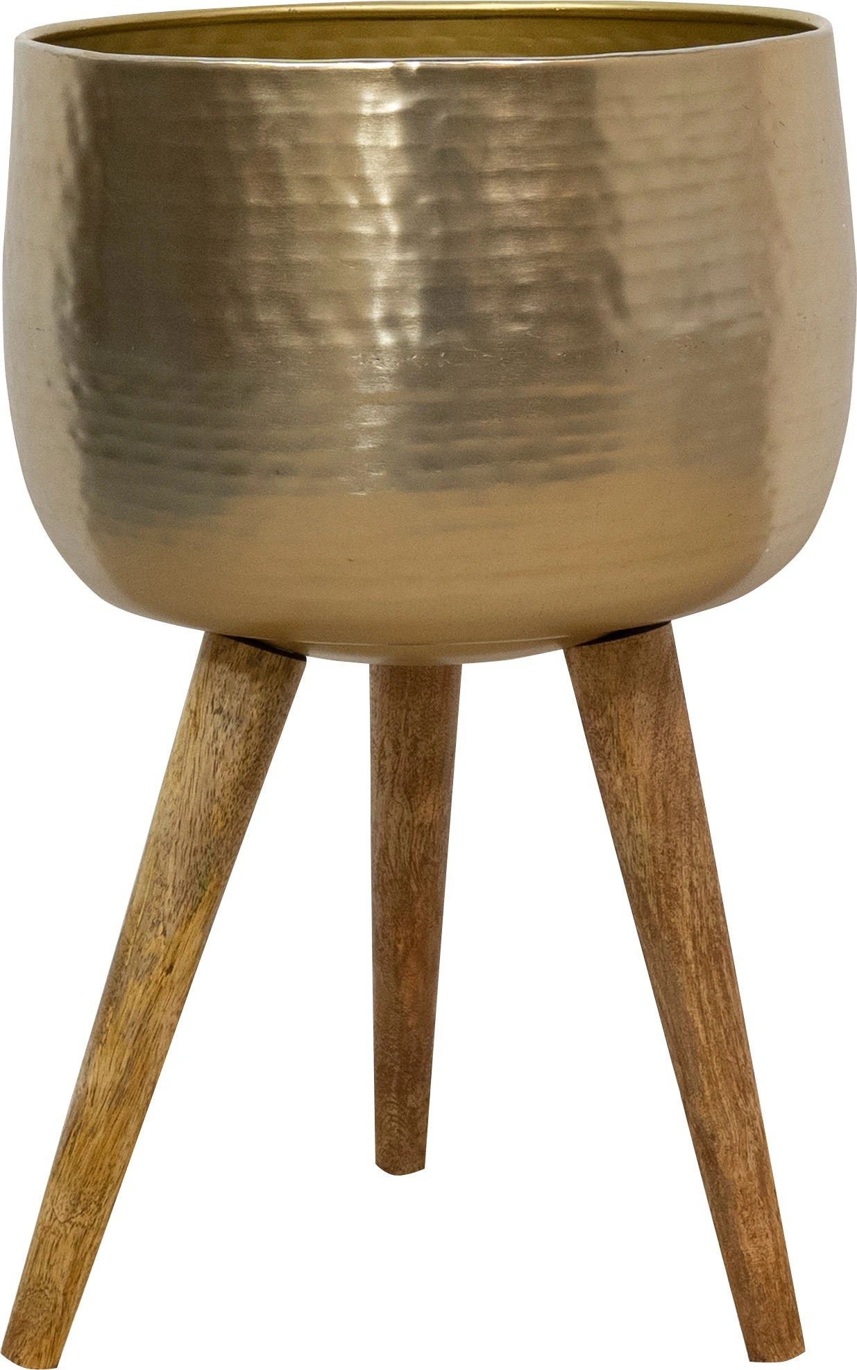 Wow! Kijk deze metalen pot op voet. Dit is bloempot Carly in messing kleur. Smooth en chique vormgegeven ronde pot in goudkleurig metaal op natuurlijke houten poten. De combinatie van hout en goud verzorgt een verfijnde ambiance, die toch ook natuurlijk aanvoelt. Dat is de juiste look en feel voor een groen interieur vol karakter. Bloempot Carly is traditioneel vervaardigd, het is handwerk! Gebruik altijd een Lucas potinlay om oxidatie van metaal te voorkomen. De houten poten zijn inclusief en kunnen in en uit de pot worden gedraaid. Carly staat hierdoor altijd stevig op eigen benen.